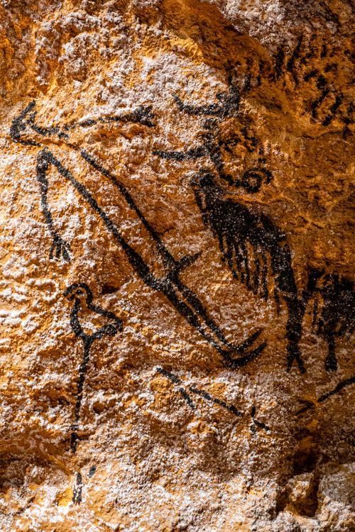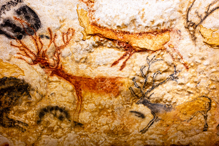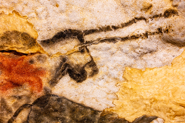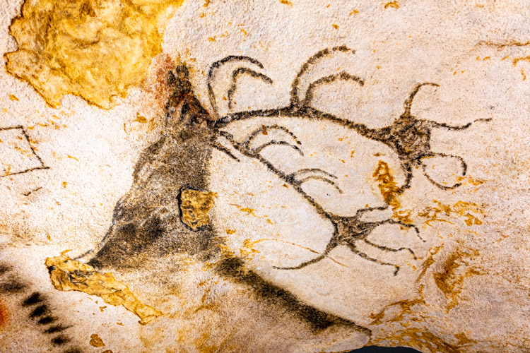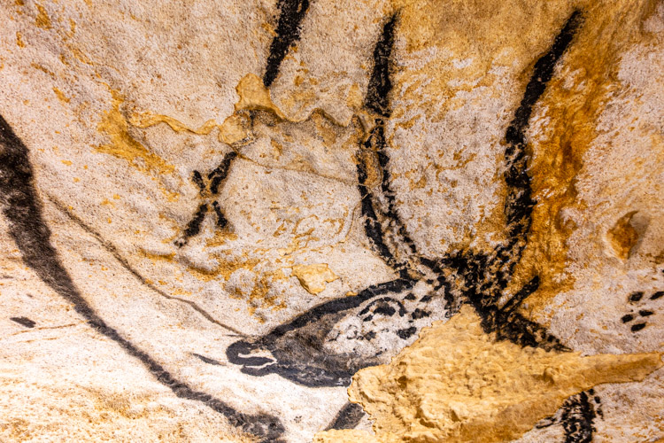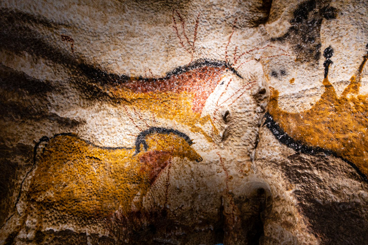 The floor is levelled, a concession to safety, and there is subdued lighting, but otherwise the replica is an accurate representation. It’s cold, 13ºC, the exact temperature of the original, and light glows from a hole high up, the hole the dog found. I know it’s not the real thing, but my spine tingles as we enter. Within seconds I forget it isn’t the real thing. Parts of the wall have crumbled away, tearing off some of the paint, but the artwork is stunning. Of course there is no record of the artist but an artist he was, the animals he painted clearly identifiable, all earlier versions of their modern cousins.