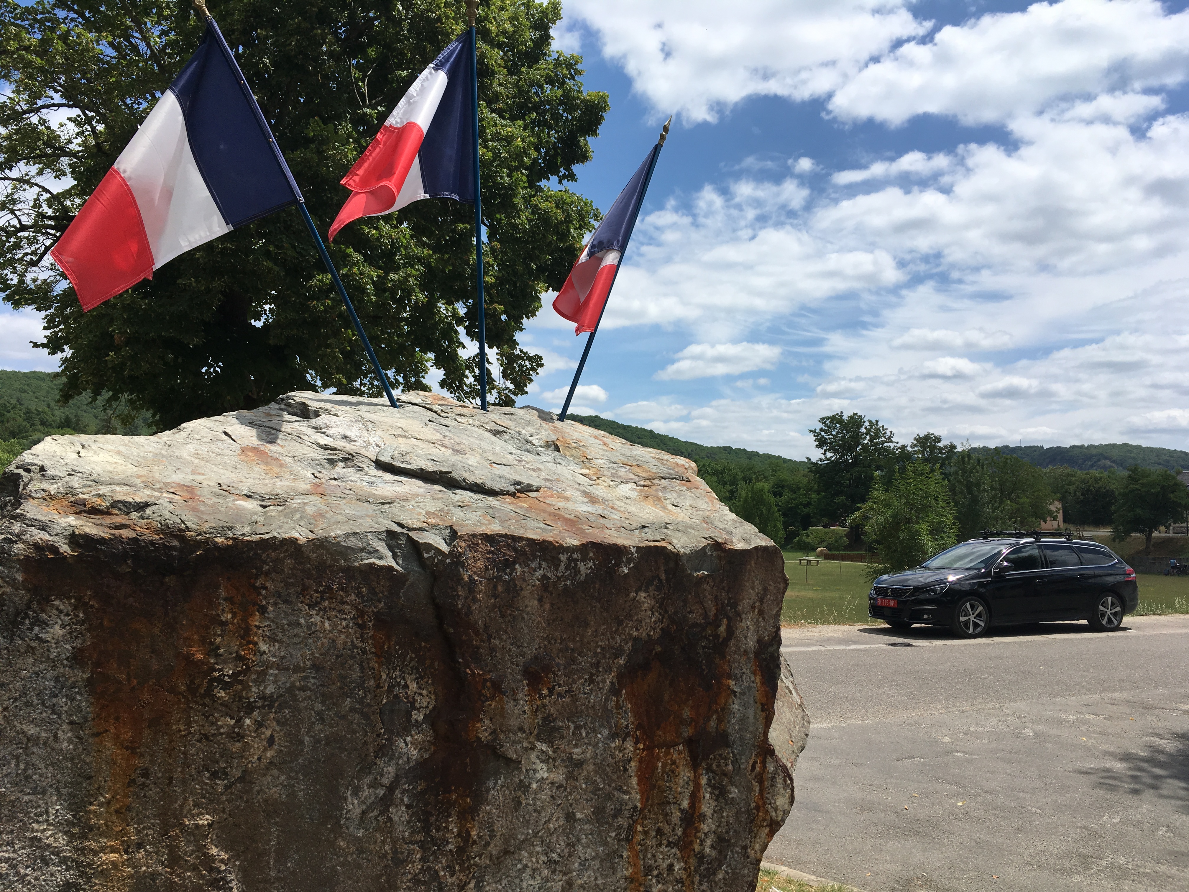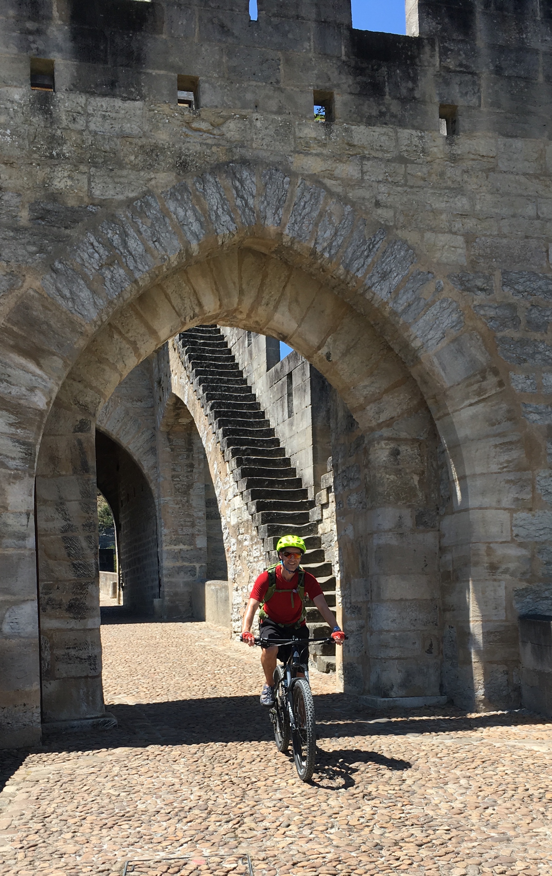 It didn’t take Neil long to get used to doing so on the wrong side of the road (although it helps when the steering wheel is also on the wrong side and the car changes its own gears). He soon found his inner European, confidently switching lanes to overtake, moving smoothly into traffic flows, negotiating narrow streets, reaching a speed limit only dreamed of in New Zealand. We had some hairy moments – on the motorway around Paris (thankfully not yet with bikes on the roof) we dropped into the lowest tunnel I’ve ever seen, the ceiling seeming only inches away from the top of the car. On one occasion I had to get out and walk alongside to guide Neil under a height restriction over a river bridge, presumably there to stop large heavy lorries going over as we could see no other reason. In the Lot valley the road clings to the side of the river alongside a sheer rock face through which it occasionally tunnels and where overhangs left us glad we’d left the bikes at the apartment.