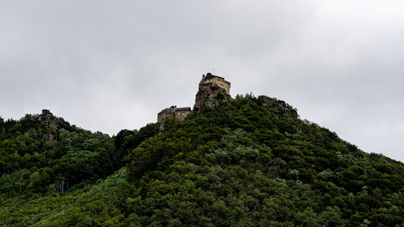 … begins with a ferry crossing, which we share with a couple of Aussies who lived in Wellington for five years. It’s a small world. We have a shorter day today and my legs are glad of it, feeling sluggish and reluctant to work. The flatlands disappear and the hills close in again, rising to cliffs where the river narrows. This is the Studengau, a treacherous passage for early shipping along the river until a canal was dug alongside to avoid the currents. The water is alive, pulsating beneath its smooth surface like muscles under the skin of a predatory animal. It’s easy to see how early watermen would believe in monsters hidden in the deep lying in wait for them.