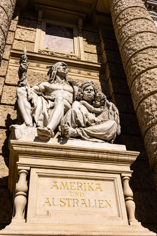 Everywhere I look there’s another impressive building, usually topped with statues, some with an army of the things. If you feel you’re being watched in Vienna you probably are, and if you’re a Dr Who fan and the least bit of a believer, I suggest you stay away – it’s impossible not to turn your back on a statue in this city. There are a couple that astound us, clearly of a time when the arrogance of European empires cared nothing for how inappropriately they represented native peoples.