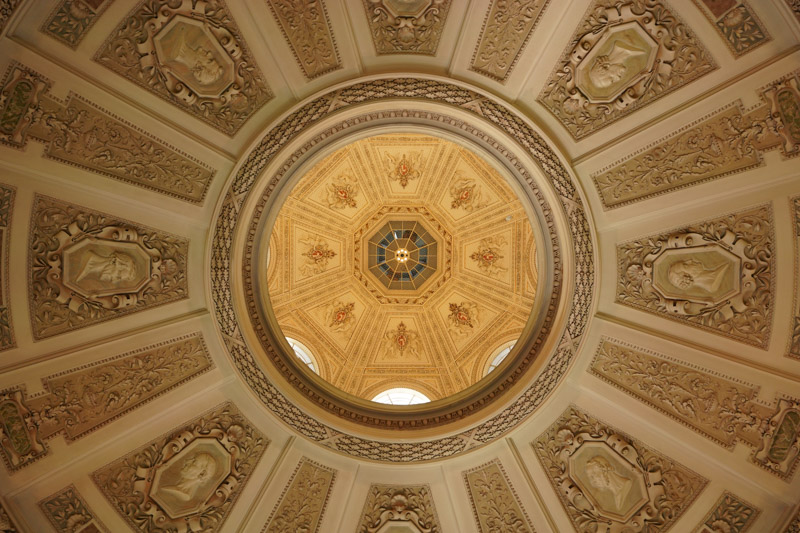 Feeling lucky, I then blag my way into the Naturhistorisches Museum, feigning ignorance when asked to show my ticket, pleading to be allowed in ‘just to look at the ceiling.’ I am grudgingly admitted and, in the middle of a group in a large tiled foyer, am the only one gazing up at the inside of a dome painted with detailed frescoes. Even merely looking is slightly vertigo inducing – I can only imagine what effort it took to paint it. As my eyes are on this, so the bloke on the door is eying me. I smile gratefully at him and, reluctant, leave – the Willendorf Venus is in this museum but I’m disinclined to spend the entrance fee to shuffle along with the chattering hordes only to find they’ve added disco music and have her dancing with a cave bear.
