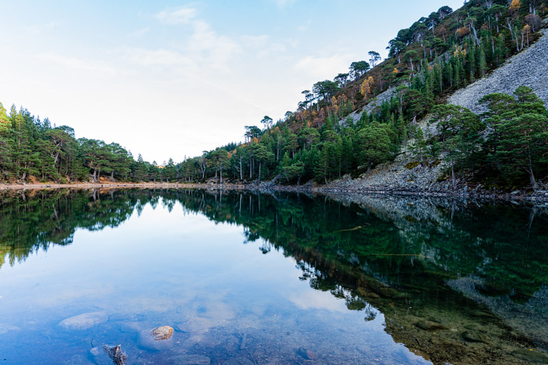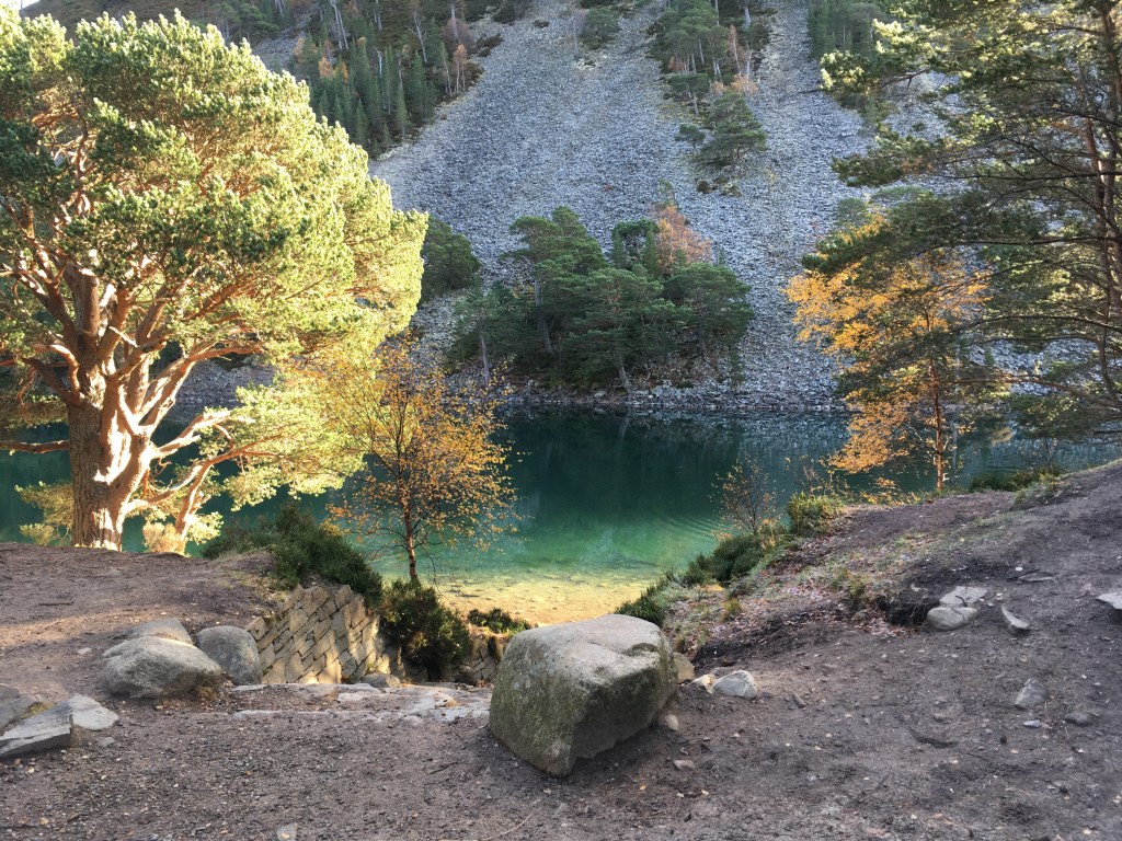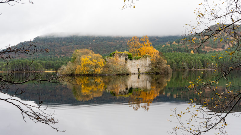 Lochs reflect the colours, the bright blue of the sky trapped within them. To add to the splendour, Loch an Eilein (Loch ‘nyellin) has an island with a ruined castle upon it – the name translates from the Gaelic to Lake of the Island. If a prince rode up on a white horse with intent to row across and claim the love of a beautiful maid I wouldn’t be surprised.