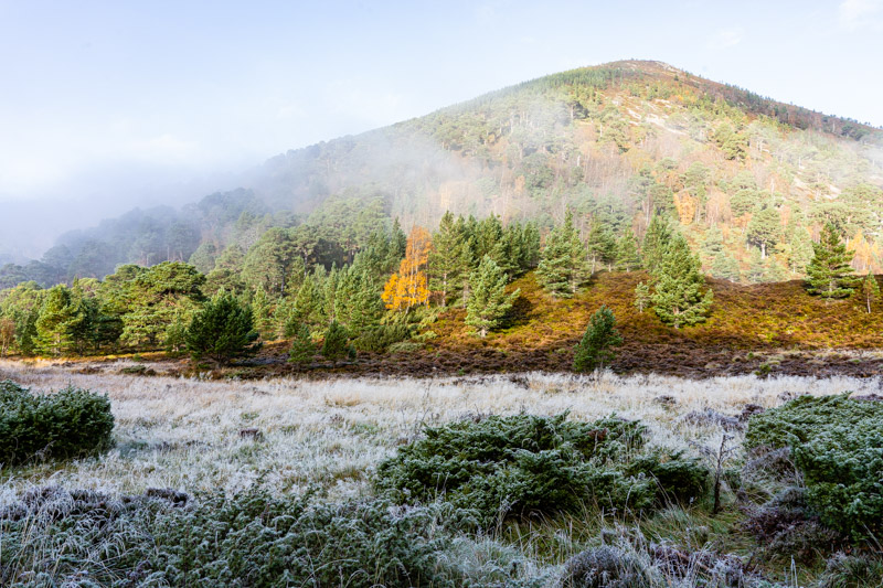 Back at the car it’s a tropical 4C, the sun already behind the hills and the cold creeping into our bodies. We whack the heater up and turn back to Aviemore. The cloud has cleared but moisture hangs along the river. It will be a cold night.