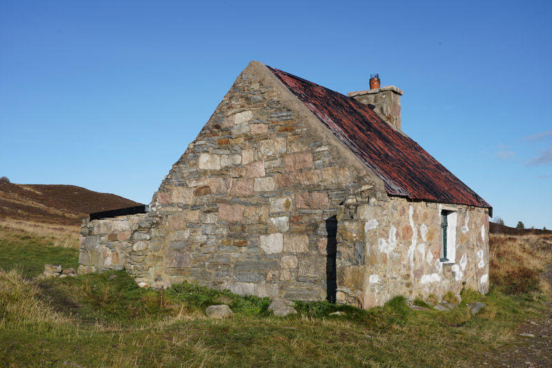 Out of the forest the path is hard, the mud that a week ago would have sucked at my boots now solid, puddles iced over and crunching under our feet. A wee bothy, dark stone and slate, marks the path junction and we pause to remove a layer before beginning the climb. The path snakes uphill, almost straight, no zigs or zags. There are shouts behind and half a dozen young men run past me. Run! I’m struggling to walk up, the going hard, much harder than Ben A’an or Conic Hill. It seems to go on forever. Now and then the wind catches me and, though slight, it’s frigid, carrying the icy cold from the snow-covered Cairngorms.