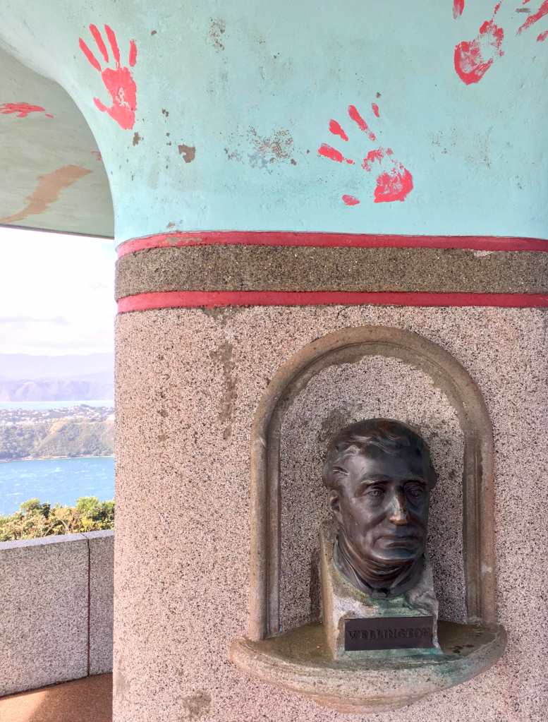 It being a weekend and therefore time for a longer walk, we headed up Mt Victoria again. It’s a nice change from city streets, even if it can be a little challenging to maintain the required social distance, the path in places being a mere metre wide. Some creative thinking is required when meeting walkers coming the other way, precariously balancing on the edge of the path or scrabbling up a steep incline, clinging onto a tree, whilst they scuttle past. Right at the top we found a lookout we hadn’t seen before, alongside the radio mast. It’s not new, having been opened in 1940 for Wellington’s centenary, so how we’ve missed it for the past seventeen years and many walks up here I have no idea.