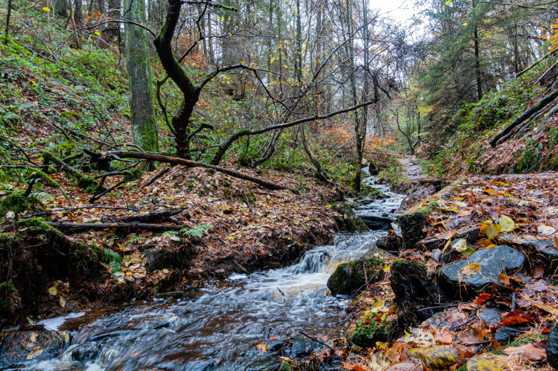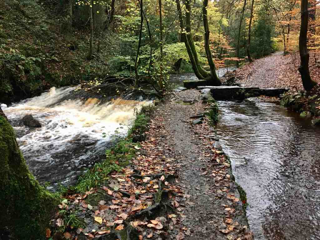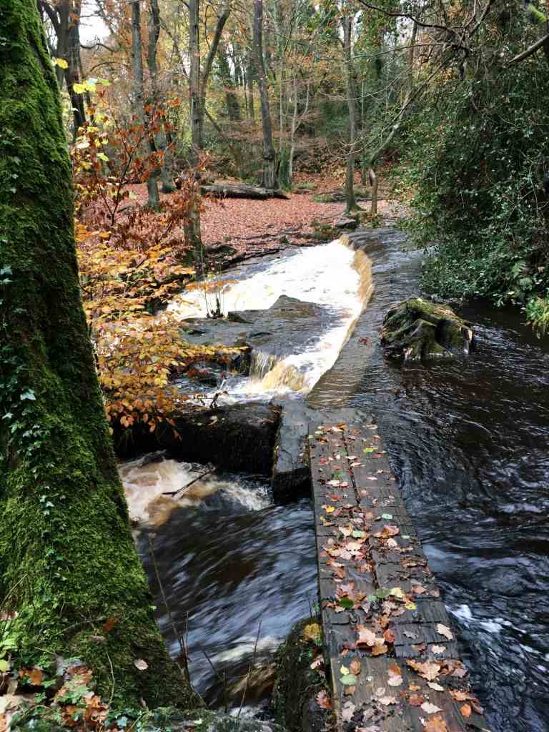 Rain still dictates our plans. We manage one day out in the National Park, walking beneath Derwent Edge rather than on it, the wind likely to blow us off if we venture higher. It’s no surprise that both dams are in full overflow, the water a solid white wall, the colours of autumn glowing around them. Otherwise we confine our walks to the woodlands and by the rivers within the city boundary. The Rivelin valley was the playground of my young life, a place of family picnics and games of cricket. We would jump across stepping-stones and venture onto the slippery top of the weir when parents weren’t looking – a move that generally resulted in a soaking and grazed knees and ankles, not to mention a telling off. The gentle race, diverted from the weir to power a wheel in Sheffield’s industrial past, was the place for small children to paddle, ankle-deep and slow moving.