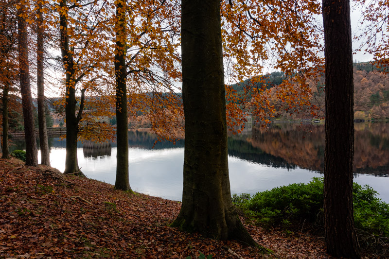 The Porter valley is similarly wet, the stream that normally bubbles away quietly boiling after so much rain. The mill ponds, by contrast, are still and silent, leaves floating undisturbed, skeleton trees reflected against the grey sky.