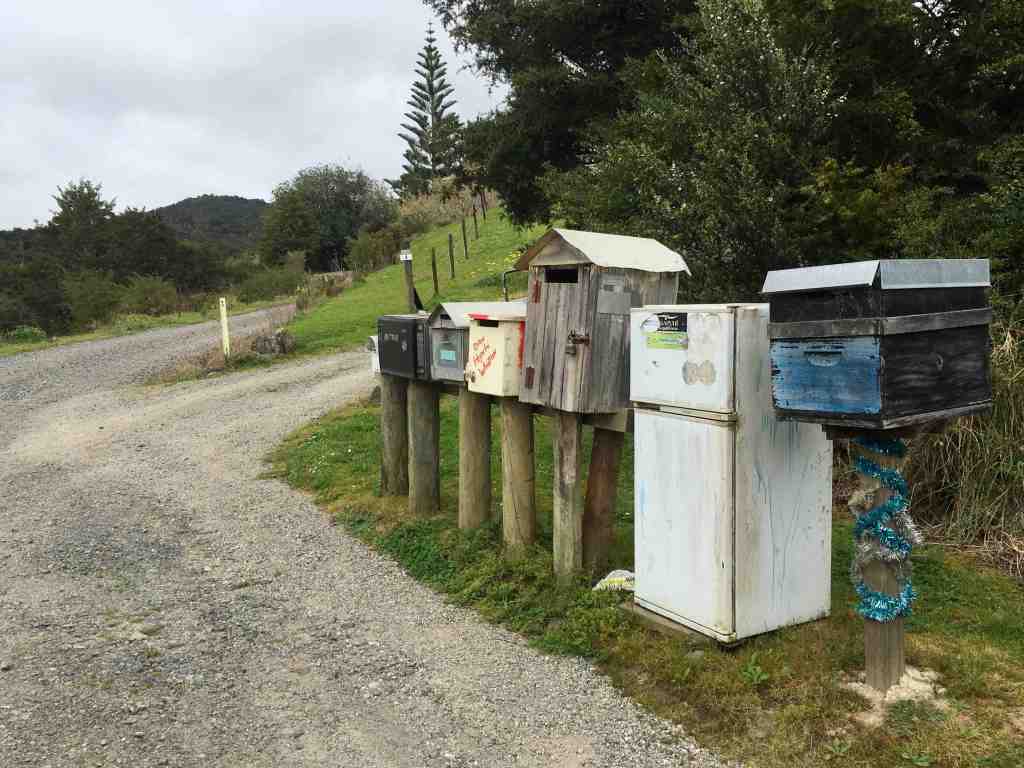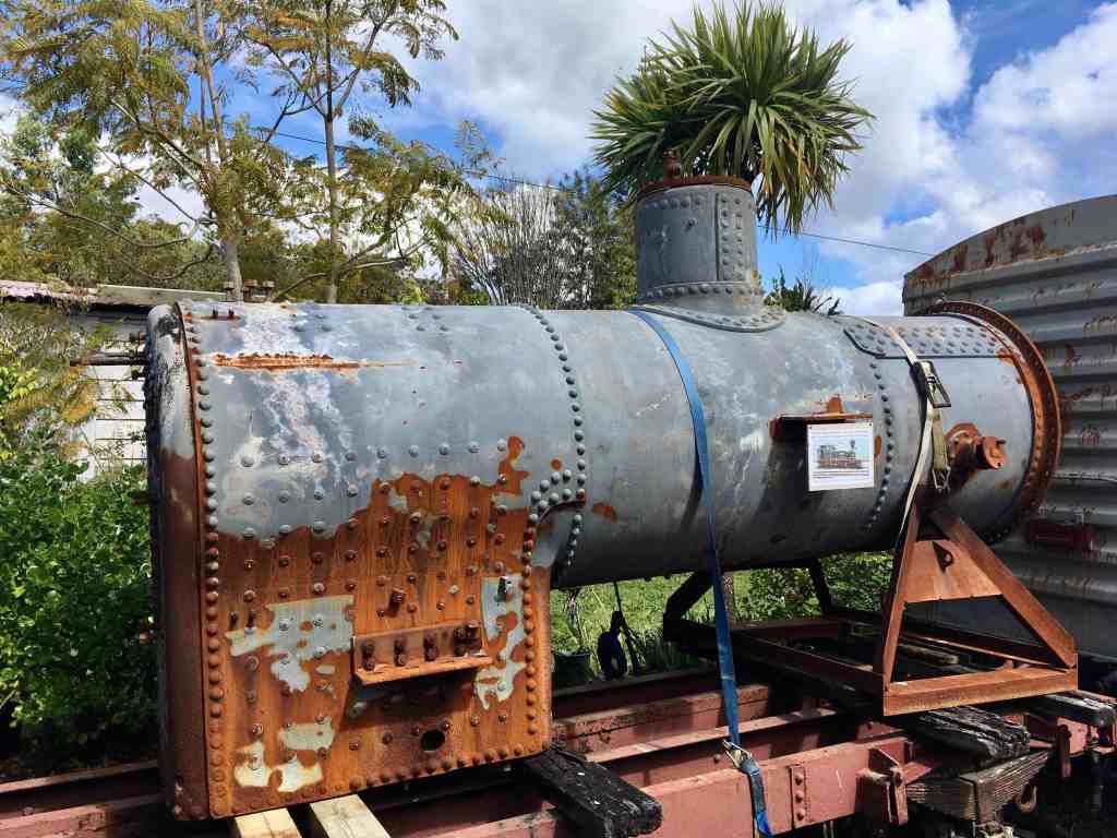 Kawakawa has an unusual claim to fame – its main attraction is a public toilet, which sounds weird, but they were designed by Friedrich Hundertwasser. The Austrian artist lived near here for the last years of his life and this was the last project completed during his lifetime. Sadly they are closed and fenced off for renovation. Thankfully the café at the station isn’t and, as we re-fuel, we discover that a vintage train runs from here to the coast on weekends and holidays. A notice announces that the train is currently pulled by a diesel engine as Gabriel the Big Engine’s boiler has blown and it will cost $350k to replace it. The buggered one sits in a siding by the café, a huge thing almost the size of the engine itself, something I’ve never really thought about before.