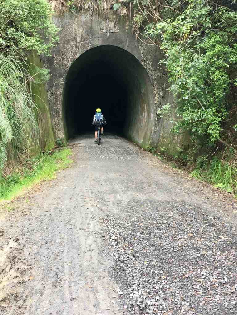 The tunnel on this section is marked as dangerous and closed for repair. We can see no gate barring access but, being anal rule-followers, we take the marked detour. It’s almost vertical and I immediately climb off and push; Neil tries manfully to cycle it. But this is challenging merely to walk up, the surface rough and slippery, so even he has to accept defeat. It’s a cruel test after nearly 80km, and our driver later tells us we could have cycled through the tunnel as it’s only as dangerous as any 100-year-old tunnel would be. Wish I’d known that!