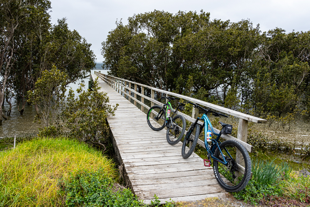 Pou Herenga Tai, the Twin Coast Cycle Trail, runs from Opua (Or-poo-a) to Horeke (Hoar-ay-kay) in the far north of New Zealand. It’s 80-odd km of mostly flat cycling along old railway routes and paper roads, a not too strenuous two-day ride across the narrowest east-west part of this country. You can start at either end or, as we opt to do, stay in the middle (Kaikohe) and cycle to each end, using a local shuttle company to bring us back to our accommodation.