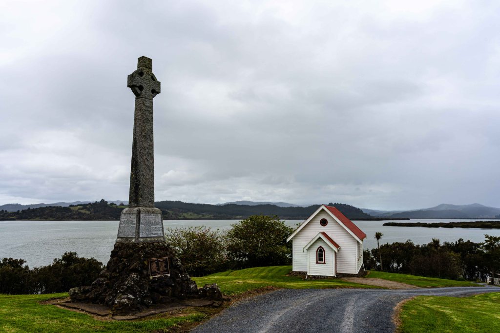 At the tiny settlement of Horeke a boardwalk runs over the mudflats towards the Hokianga (Hoe-kee-an-gah) Harbour, ethereal in the misty rain that hovers over it. We cycle to the end of the trail at Mangunga (mah-noon-ah), where a long pier stretches out into the milky-tea water, eddies whirling under it as the tide recedes. The air is still and, apart from us, it’s absolutely deserted. The Wesleyan Mission House sits on a rise alongside a small chapel. One of Northland’s oldest buildings, it’s the place where Te Tiriti o Waitangi (the Treaty of Waitangi) was signed by the largest number of Maori leaders.