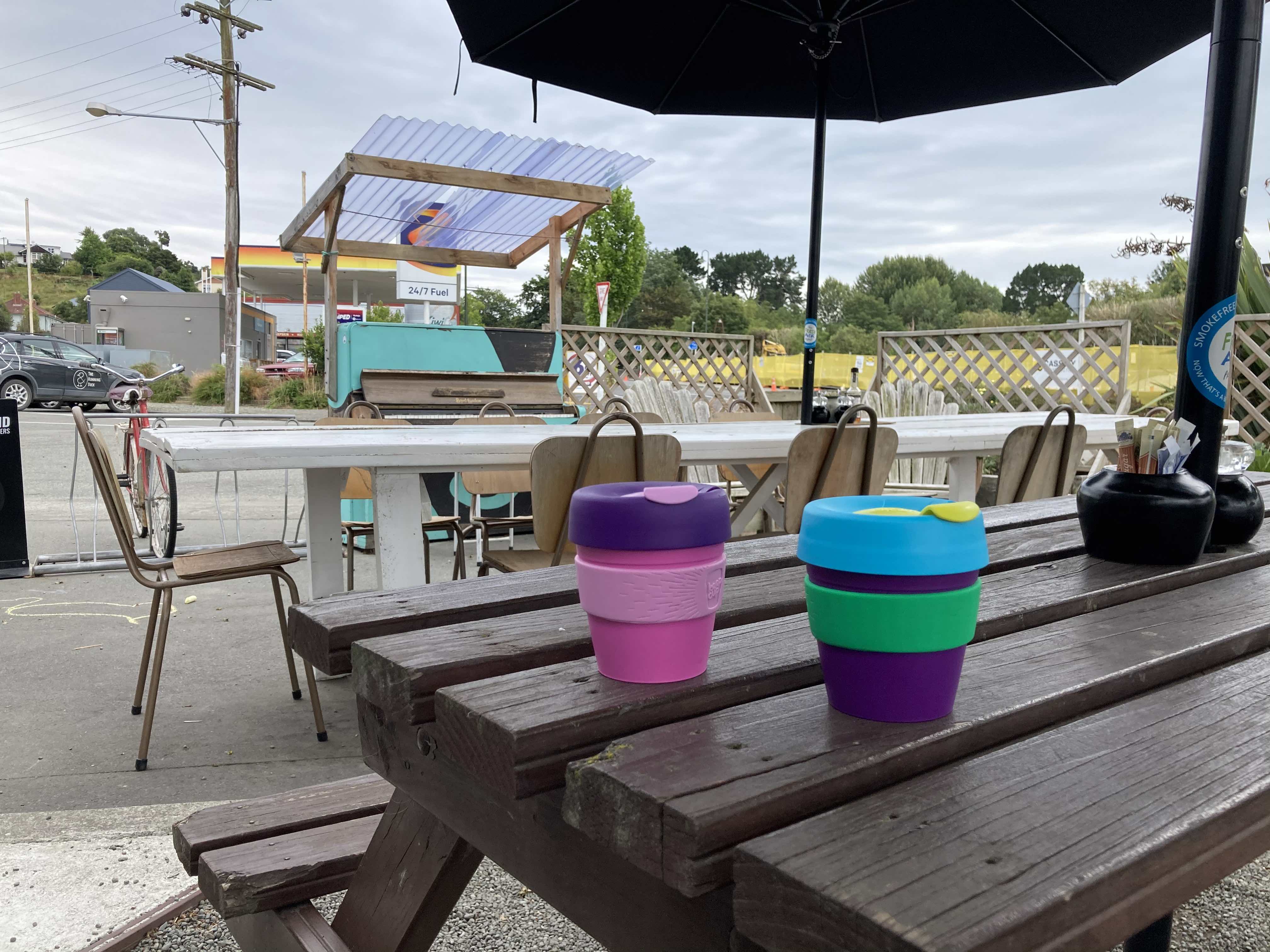 We drive through small settlements, some only a couple of houses, most with a stone war memorial. Tiny streams trickle through wide riverbeds of gravel and pebbles; when it rains in the hills and mountains to the west they will flow bank-to-bank within hours. The sea is bright to our left, a translucent opaqueness that reminds me of an opal. In Clarence I try to think of something clever to say about being cross-eyed when Neil wonders aloud if there’s a Lions club in town (it’s an age thing; google it). Nearing Kaikoura, where the 2016 earthquake shook half a mountain onto the road and ripped the rail line from its foundations, massive earthworks and walls with metalled artwork atop them shore up the steep hillside. Across the road a new promenade juts out along the rocky shore that was the seabed, where waves lapped the edge of the road, until the same shake lifted it.