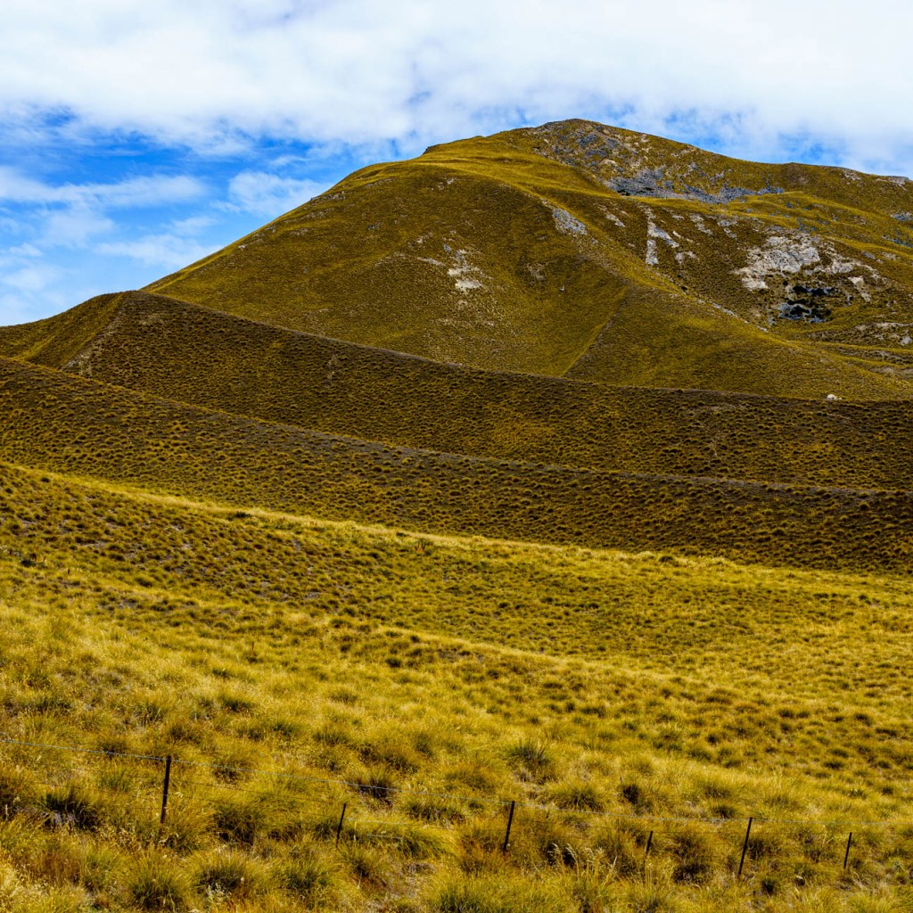 The road south is, like most in New Zealand, single lane (each way) with occasional overtaking lanes, generally when you don’t need one, so patience is a necessity. But there’s plenty to look at; rolling hills merge to sharp-peaked mountains, long straights become twisting roads clinging to the sides of deep gorges and mountain passes. This is peak tourist territory and we are in high season, but the constant caravan of campervans we would normally encounter are snoozing in rows alongside dusty airport runways awaiting the return of overseas tourists, and we see a mere handful of them over two days.