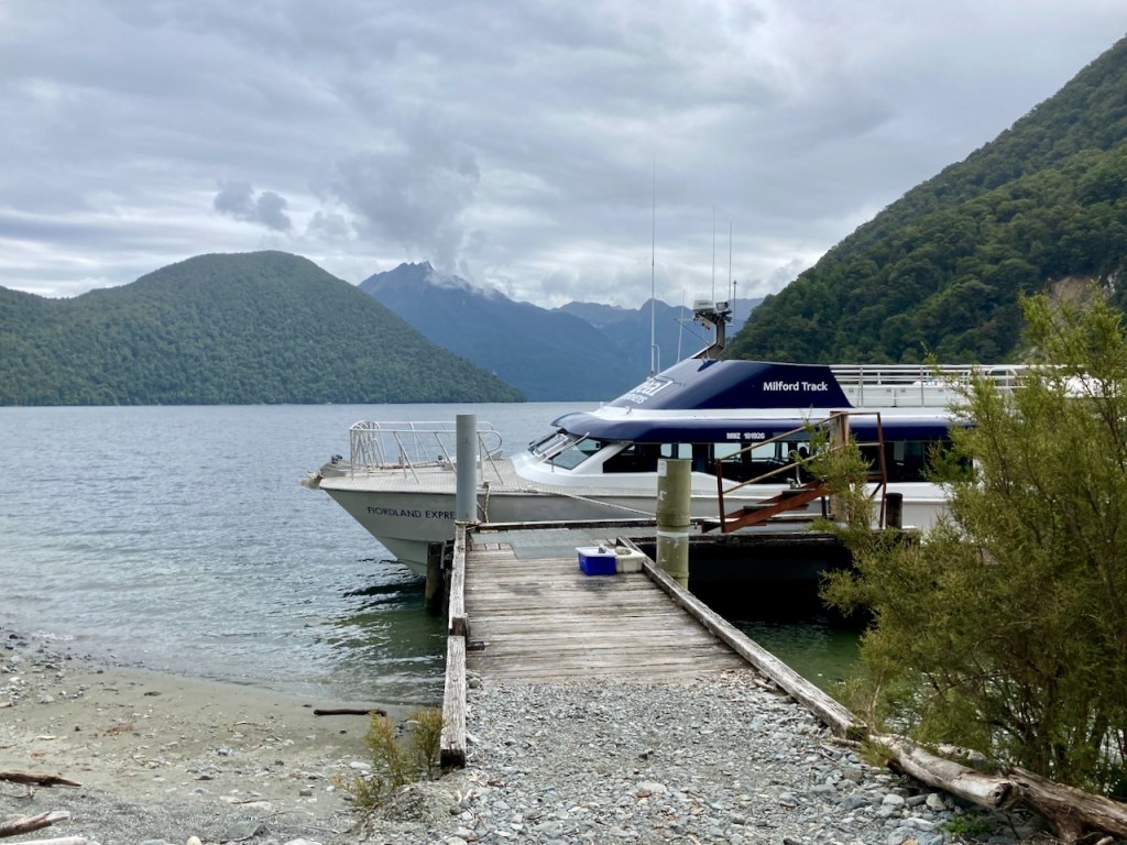 We turn west towards our first view of the mountains of Fiordland peeking from behind distant hills, and a squall of rain hits the windscreen. I have a good rain jacket and waterproof trousers in my pack but, despite that I’m entering the wettest part of New Zealand (it rains roughly 200 days a year here), I’m hoping not to need them and am glad when the sun greets our arrival into Te Anau. Our lunch stop is (socially distanced) shared with those who have just completed the walk – a lot of weary faces, a couple of twisted ankles and, the whisper goes around, a cracked rib! What am I letting myself in for?
