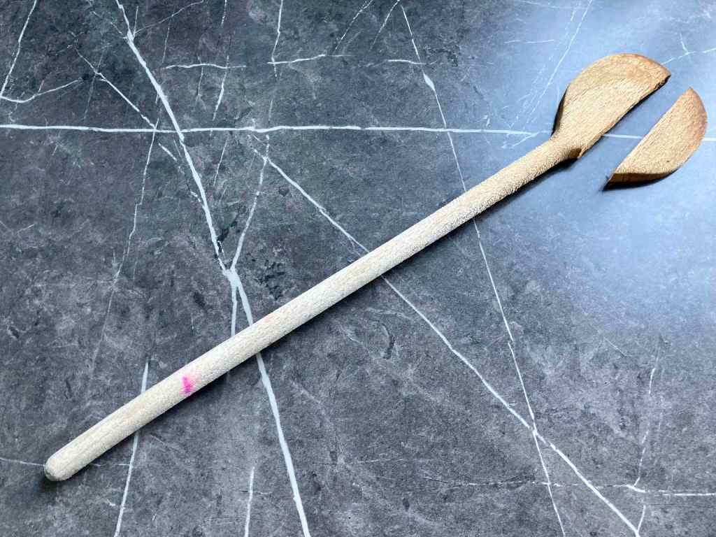 This is a wooden spoon. As statements go it’s not that revelatory; unless your eyesight is impaired you can see it’s a wooden spoon. To be specific, it’s a broken wooden spoon, an end achieved when I smacked the bottom of a pan with it, something I often do and, in the case of this spoon, it was a pan too far.