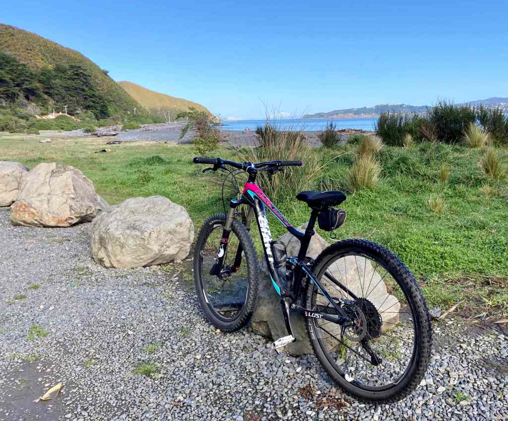 Around the eastern side of the harbour, past Eastbourne, a wide track skirts the edge of the water. Last week wind and tide slammed a catamaran into the low sea wall here, scattering debris across the road. Today is still and the water wobbles around rough rocks. My hip creaks as I swing my leg across the bike and park my bum on the seat – it’s been a few weeks. As it doesn’t take long for my body to stiffen with lack of exercise, it takes only a couple of km for it to ease into the motion of peddling and remember how to do this. There’s no wind to tell of but cold air drifts from the south and bites my cheeks as we ride into it. Thankfully the track is flat so I don’t need to worry about trying to brake hard with frozen fingers.