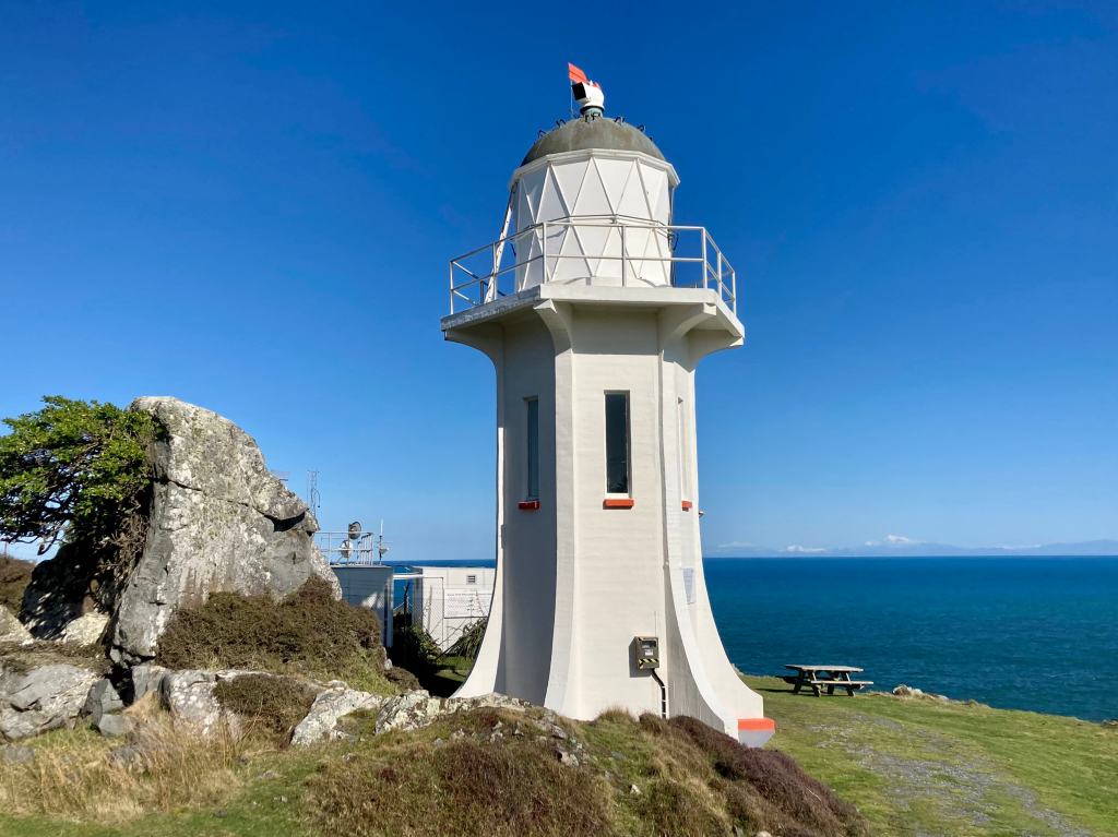 We prop our bikes against a fence and wander around the buildings. Up higher the wind is a bit perky, not surprising as there is nothing but sea between this point and the frozen continent of Antarctica. As one of the least remote lighthouses in New Zealand this was considered a good posting, but it must be hell up here in a storm and I’m not sure I’d like to be here then. Maybe a good job it’s now automated.