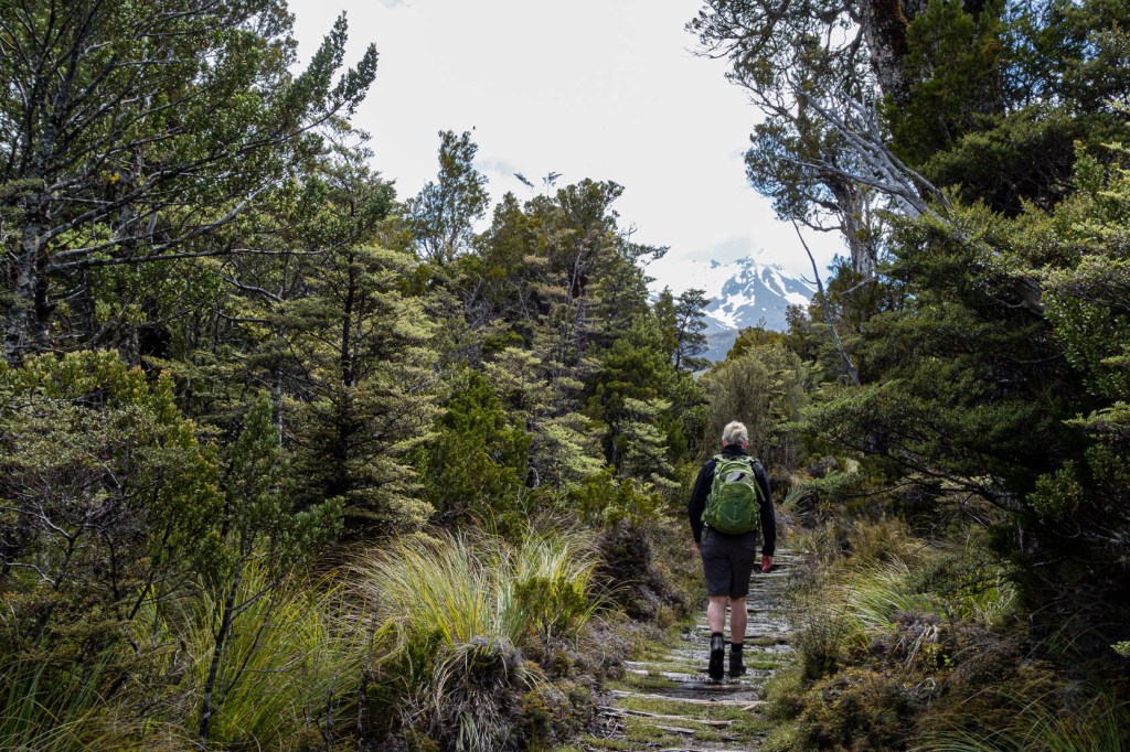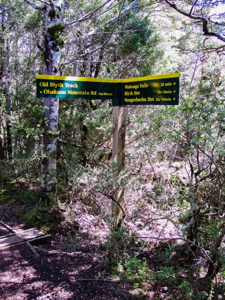 The first time we walked the Old Blyth Track (no idea where the new one is, if there is one) we did so, I guess, nearly twenty years ago. We’d travelled here to ski and, as so often happens, the mountain was closed because it was too windy to plonk people in chairs hanging off cables suspending them a fair few metres from the rocks below (skiing isn’t easy in these parts). I say we walked the track – in reality we paddled along it, the water over the tops of our boots in many places. It wasn’t a pleasant experience, not helped by a strong wind that, when we broke from the shelter of the forest to the open flank of the mountain, tried to rip the flesh from my face and actually blew my foot away as I lifted it across scattered snow to step onto a boardwalk. For many years I had a clear memory of this but was unable to pin it to a specific walk, which tells me it must have been a while before our second attempt, when we discovered the track isn’t always a river.