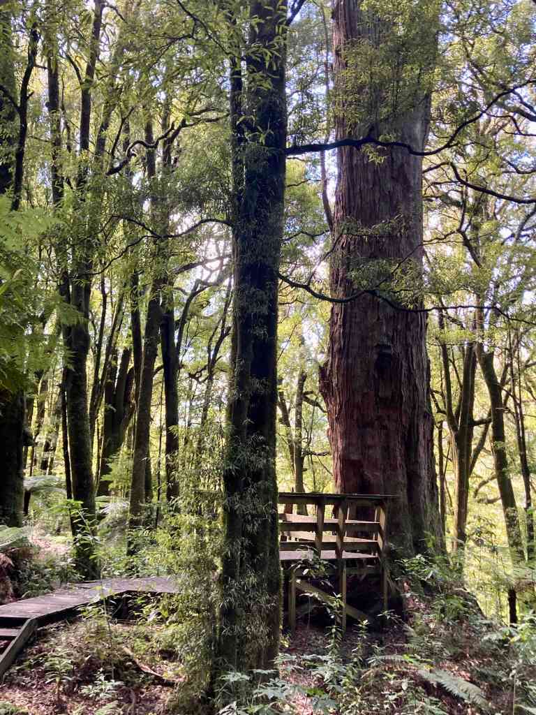 A path leads from the picnic area into the bush, a sign warning that the track ahead is closed. True, there is a small wooden barrier, but if you approach from the other direction there are no signs of closure, and the first you would know of an issue is when you reach the barrier having already traversed the closed part. I don’t advocate rule-breaking but this does seem weird to say the least, and I know we’re not the only people who ignore the sign and scramble across the fifty metres or so of uneven terrain before continuing.