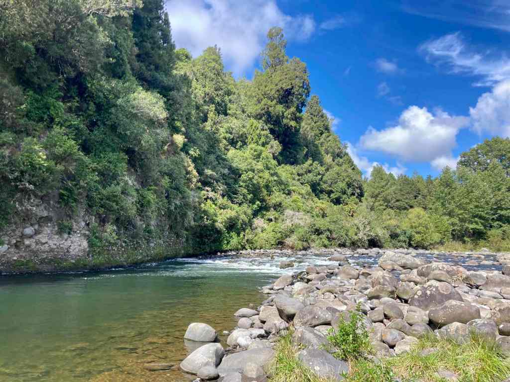 Ohinetonga is different. Larger than many, a couple of kms of gravel road through the forest leads to a small car park by a large grassy area with picnic tables. Down a steep bank the Whakapapa River bubbles over rocks and boulders. A few hundred metres across a concrete road bridge is where the 42 Traverse spits out muddy mountain bikers from their arduous trek across the Central Plateau. Currently closed after slips tore part of it away, it’s described as one of the most challenging tracks in the north island, therefore one I’ll never do. Even Neil would find it hard, primarily the required navigation and, should he ever attempt it, I’ll likely never see him again.