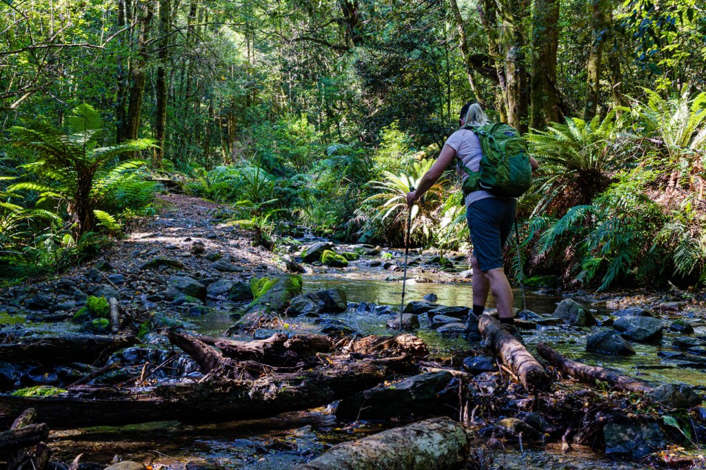 About an hour’s drive northeast of Ohakune, deep in the Kaimanawa Forest, the Tree Trunk Gorge track leads off a narrow road and into the bush. It follows the line of an old road associated with the Tongariro Power Scheme and is mostly wide and straightforward, albeit shared use with mountain bikes. Neil rode it a few years ago with friends and we’ve walked it a few times since then. I won’t ride it, too challenging for me, and it’s rough in places with no flat sections; you either climb or you descend.