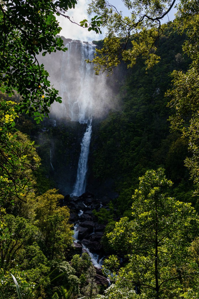 The next day we head to Wairere Falls, the white streaks on the Ranges we can see from the farm. Being the highest in the north island they are a popular spot and a track, described as easy on DOC’s website, runs to a viewpoint. I wonder how DOC defines the difficulty of its walks – in this case the path may be easy to follow, but I wouldn’t care to do it without proper hiking boots. Underfoot is rocky and rough, more a clamber than a walk. It reminds me of Padley Gorge on the outskirts of Sheffield, huge boulders and moss-covered rocks, the difference being the surrounding mamaku ferns and nikau palms rather than oak and sycamore.