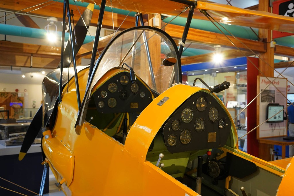 I learned this and many other facts in the excellent little museum that celebrates Gander’s role in air travel, a small building that, maybe intentionally, looks more aircraft hanger than place of culture. It’s chock full of bits of aircraft, information panels, and a couple of simulators, a line of red arrows (yes, I laughed when told to follow them; yes, I was the only one to do so) on the floor showing the best order in which to view. My head gets full in museums so I like them small and this one is perfect. It houses five impressive full-sized planes, four outside and a rare tiger moth indoors protected from the elements.