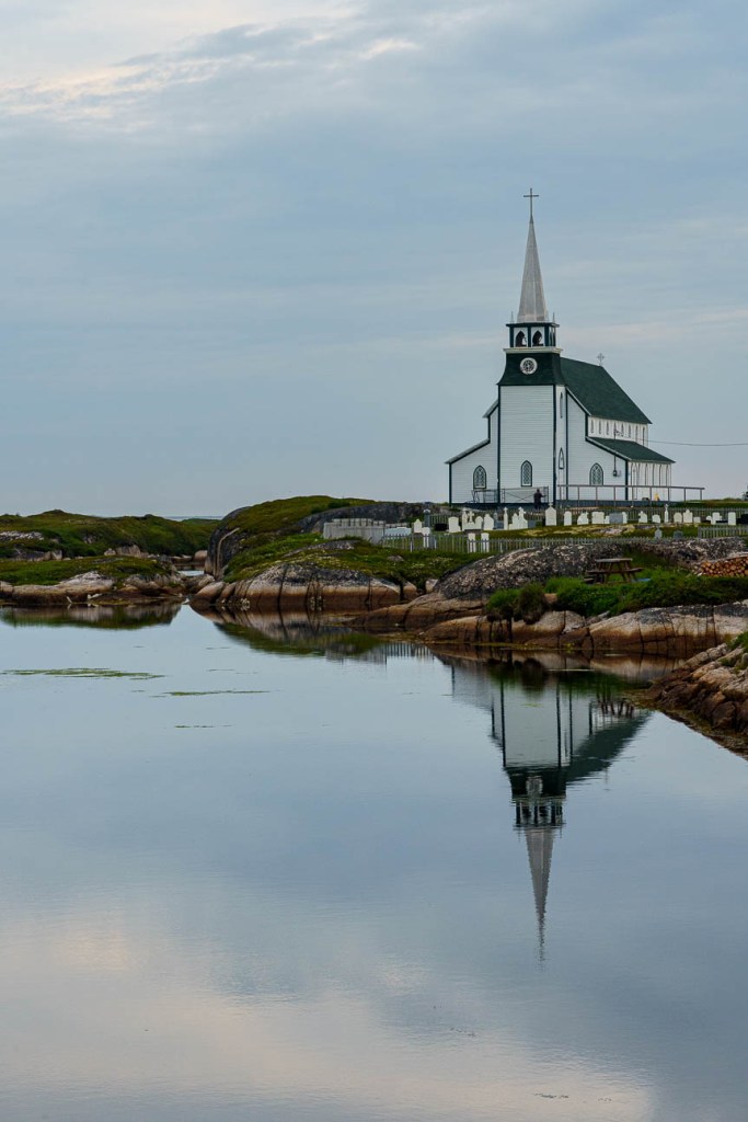 Many of the villages on this coast are on islands with a tickle – the Newfoundland word for a narrow inlet of water – between them, bridges and causeways providing access that originally was by boat only. We stay right on the edge of one of these tickles, a strip of lawn and a small pergola between the house and the water, smooth round boulders topped with a hat of grass on the other side. It’s the best view I’ve ever had from a bedroom window. The village has the archetypal multi-hued buildings, reflected in a calm evening sea, the sun streaking reds and oranges across the sky. It’s so beautiful I could look at it forever, peace settling on me, a feeling that I could happily do nothing but sit here and watch the light change.
