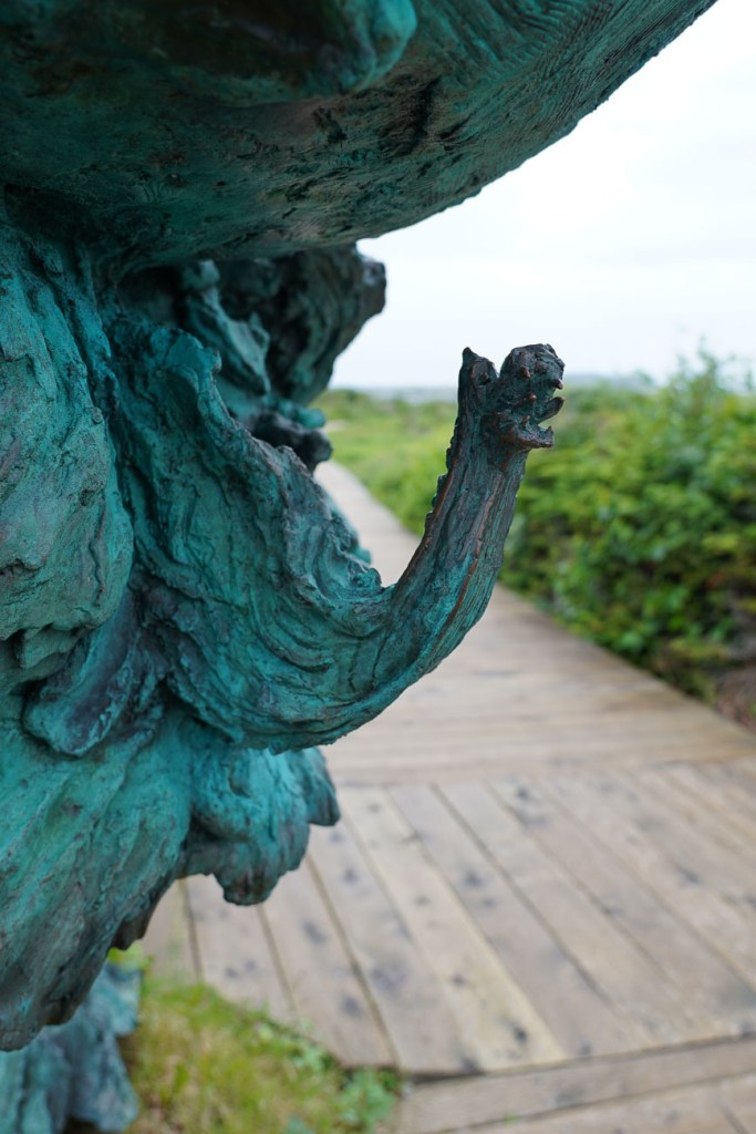 Once again we are in a UNESCO World Heritage site; once again we have an excellent Parks Canada guide to lead us around. The site was discovered in the sixties (I tell you, a good decade…) by a lawyer whose wife, an archaeologist, then excavated it. When the excavation was finished, the site was returned to how it was when first found, which is how we see it, with mounds and raised areas showing the outlines of buildings, firepits, and fences. The guide regales us with tales that have been passed down verbally for centuries, stories for around the fire at night rather than proven history. The Vikings definitely arrived here around 1000AD; they definitely stayed for around a hundred years; they definitely left: there is evidence for all these occurrences. How, why and who we can only guess. The stories must have some element of truth (for a start, this place exists) we just can’t rely on them as historical fact, and we have no way of knowing, for instance, why the settlers abandoned the site, presumably to return to Greenland.