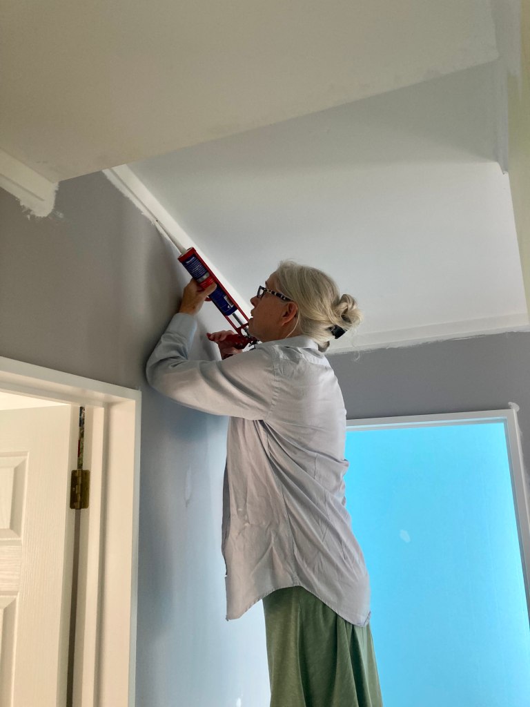 It was the yellow that was the problem. We’d done the prep, a good couple of days of wiping, sanding, filling, wiping. The house is about the newest house we’ve owned, but that doesn’t matter in a shaky land where buildings are necessarily made to flex. Cracks appear as soon as you turn your back, the worst between ceiling and wall, a narrow slice of wood masquerading as a cornice to please the eye (a builder once told me) meaning there’s a double line to run a caulking gun along. I may not be the best shot in the west with a caulking gun (something I don’t think my mother ever knew existed, let alone used, although she’d probably have been pretty nifty with one) but I’m not bad. It takes me a few metres to get into my stride, work out how hard to squeeze the trigger to release enough goo to fill the crack but not too much that it will spread out the side of my finger when I run it along to smooth it. A professional sharp-shooter would soon have me face down in the dust but I subscribe to my fellow perfectionist, Mum’s mantra: if anyone has a comment to make, they’re welcome to have a go themselves. Or, as Dad once said when Mum criticised her own work: If anyone says owt, tell em we’re not using them blokes again (this was the seventies when Dad believed only men were paid for painting).