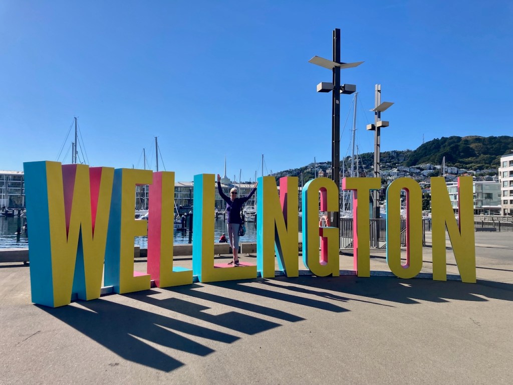 The man in red waved from the last float and we grabbed our stuff and wandered outside, me looking from map to reality. I’m a sucker for a sea view so the City to Sea Bridge beckoned. We watched an Interislander ferry, possibly the one we would be on in a week’s time, slide across the water, and wondered where the harbour entrance was – all we could see was water bouncing in a huge bowl of harbour, no open sea. We climbed the steps with a light wind pulling at my hair, wafting a vague sea smell into my nostrils. Neil’s arm snaked around me and I felt at home. I could live here, I said. He nodded. We’d been in Wellington less than twenty-four hours.